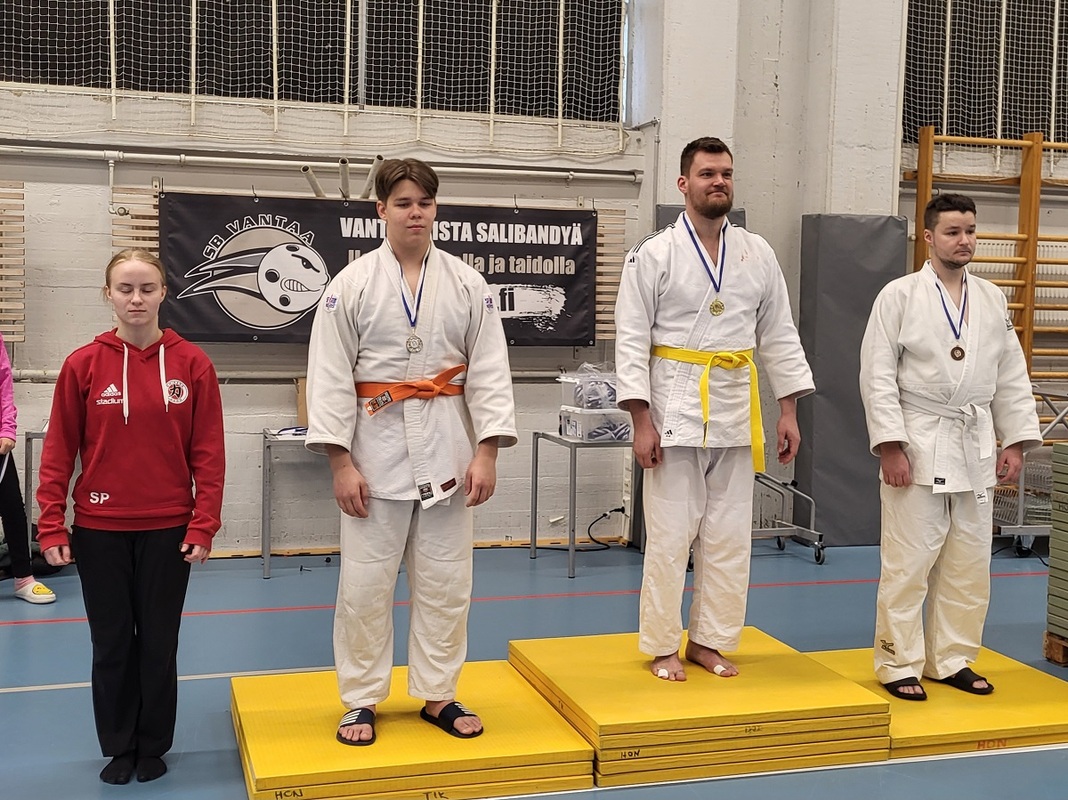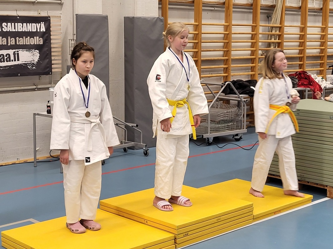 Vuoden ensimmäisessä aloittavien judokoiden kisassa kaikille mitalit! Viime vuoden viimeisen Startti Cupin tapaan akagilaisia oli tämän vuoden ensimmäisessä kisassa mukana kuusi judokaa. Jokainen heistä matsasi itselleen mitalin, joita tuli hopeisia neljä ja pronssisia kaksi. Hopeaa ottelivat Lili Kuntonen, Touko Ruusulampi, Otto Hänninen ja Mika Susi. Pronssia kantoivat tuliaisina kotiin Erkka Kangas ja Oiva Susi. Kisatuloksista on kiva nähdä, miten opitut taidot kantavat suunnilleen samantasoisten uransa alkupuolella olevien harrastajien kanssa. Tällä kertaa homma meni erittäin mukavasti. ISOT ONNITTELUT KAIKILLE! |